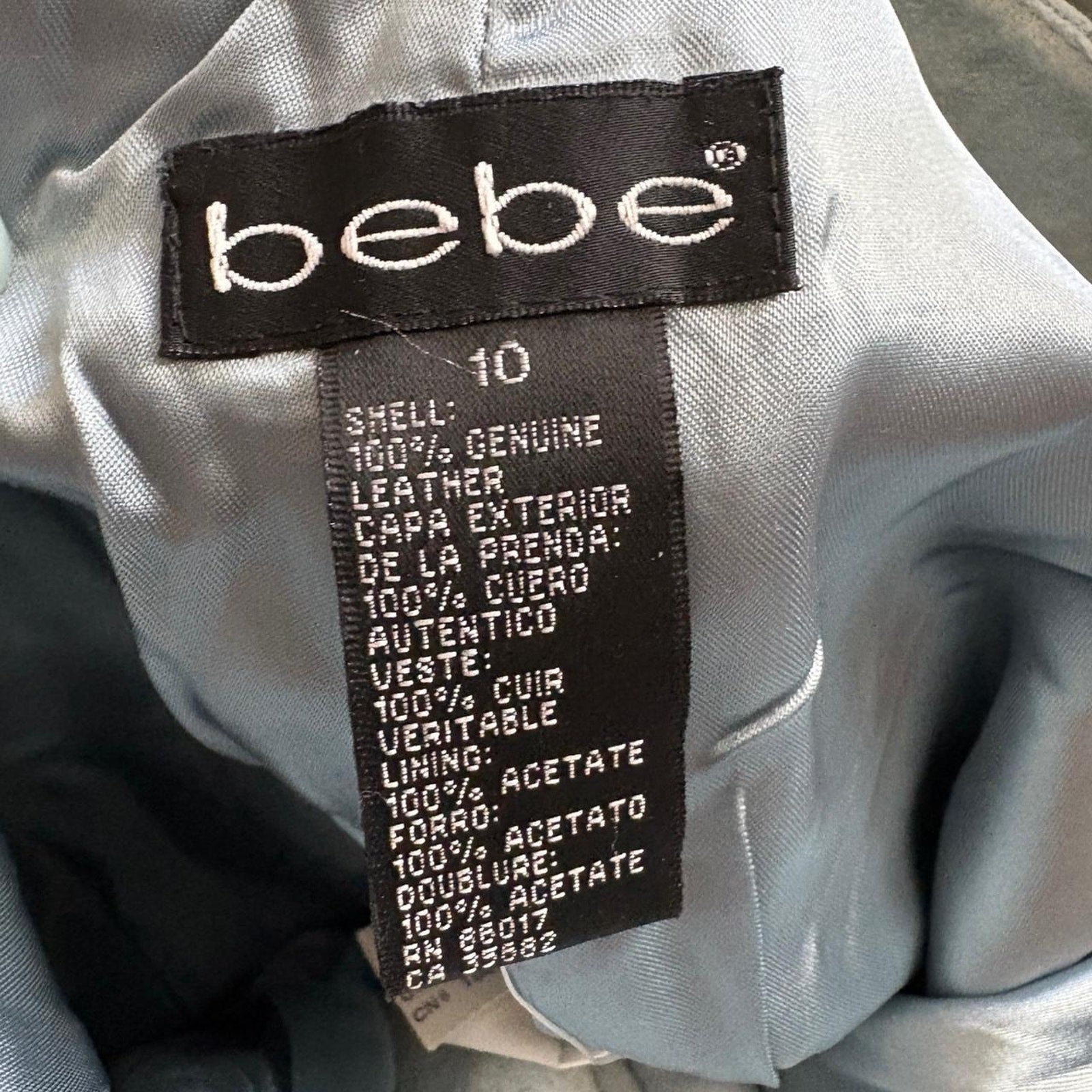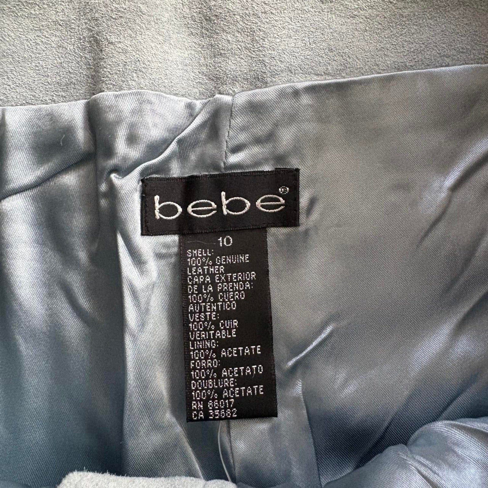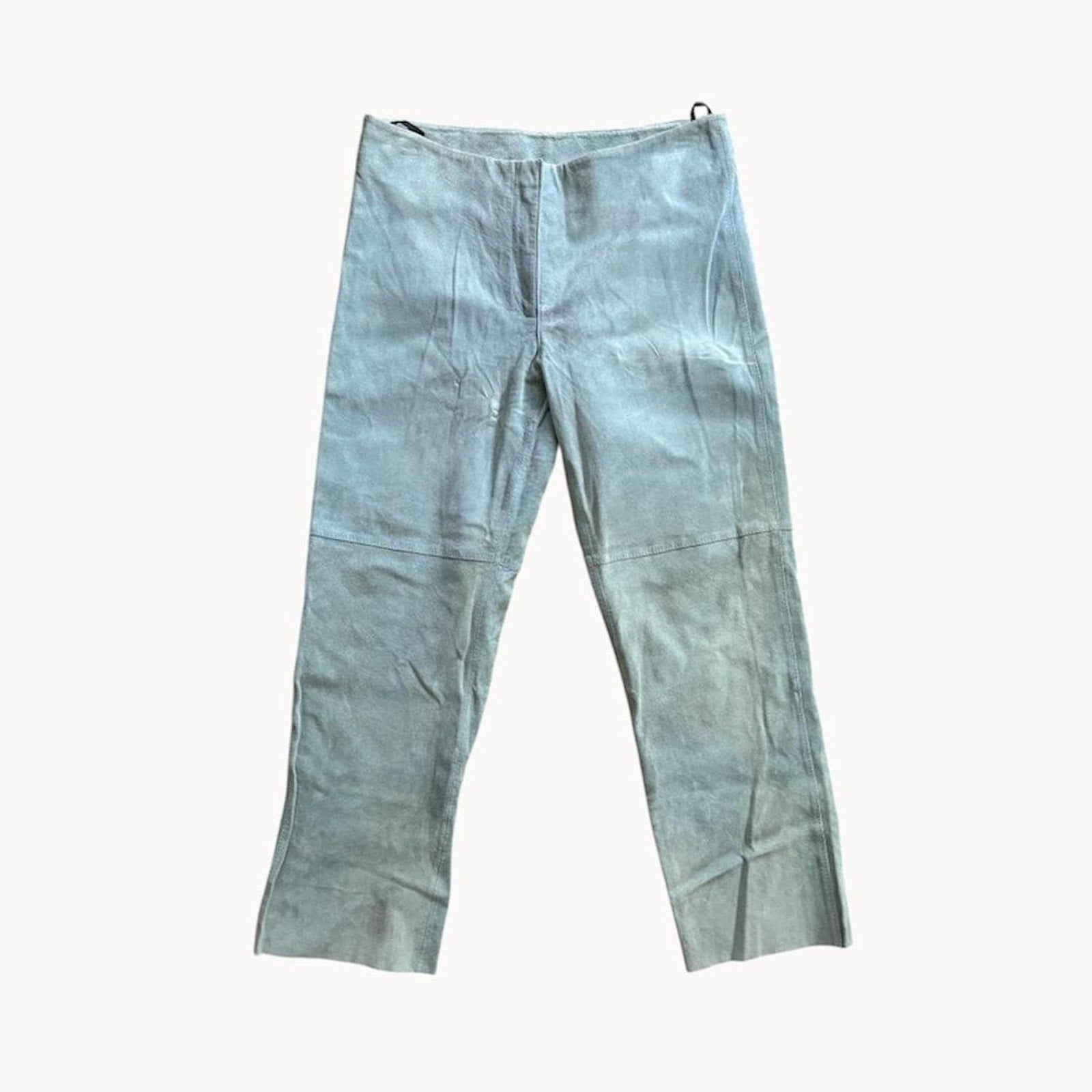 ā light blue suede (genuine leather) capri length straight leg pants.