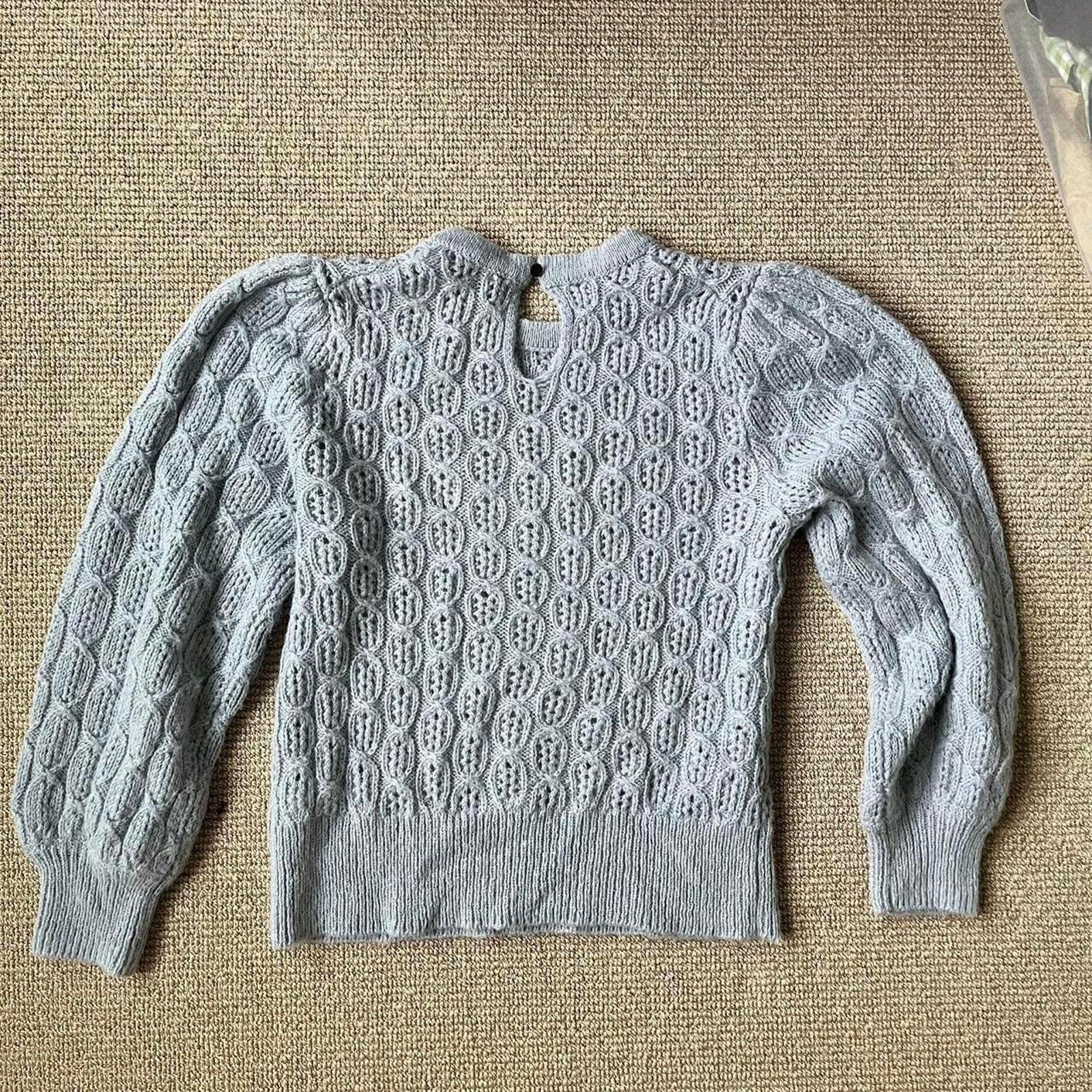 ♡ light blue patterned knit sweater. Puff sleeves with button back neckline. Itchy material, so sensitive skin please be aware! Definitely manageable with layering.