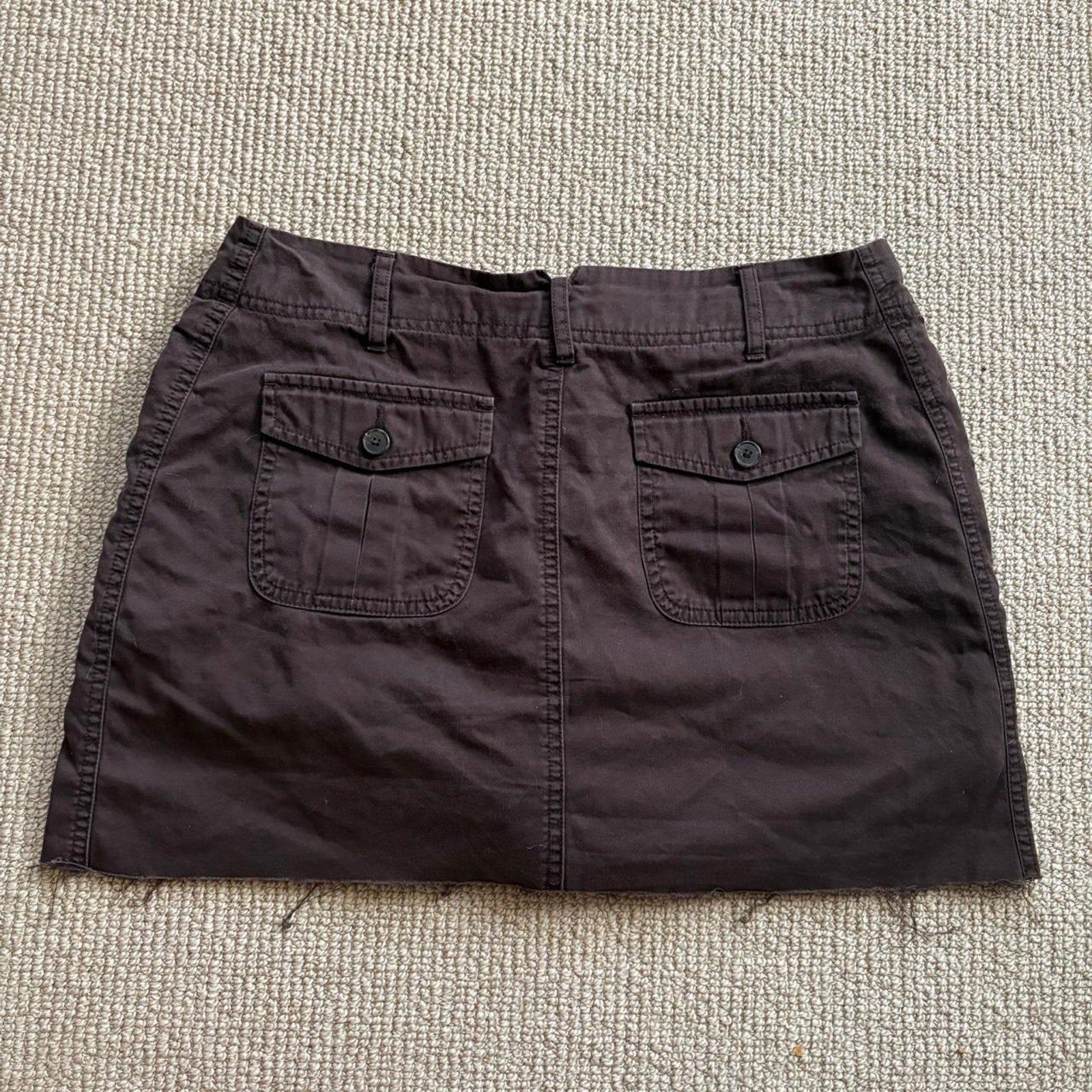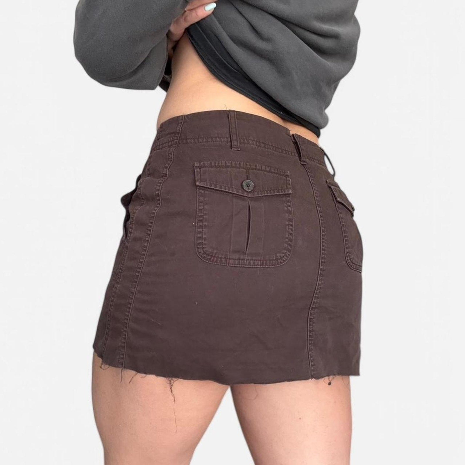 ✭ brown mid rise mini skirt. Raw hem from previous chop. Shorts underneath.