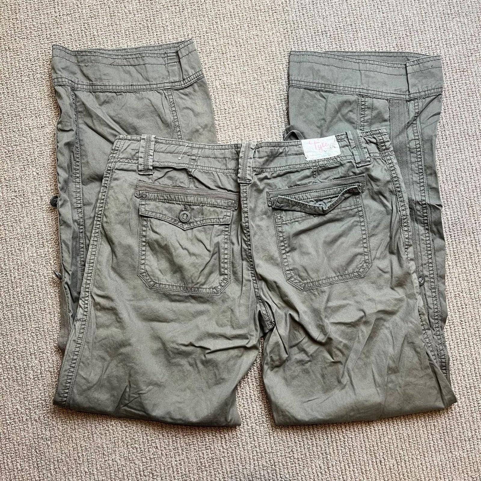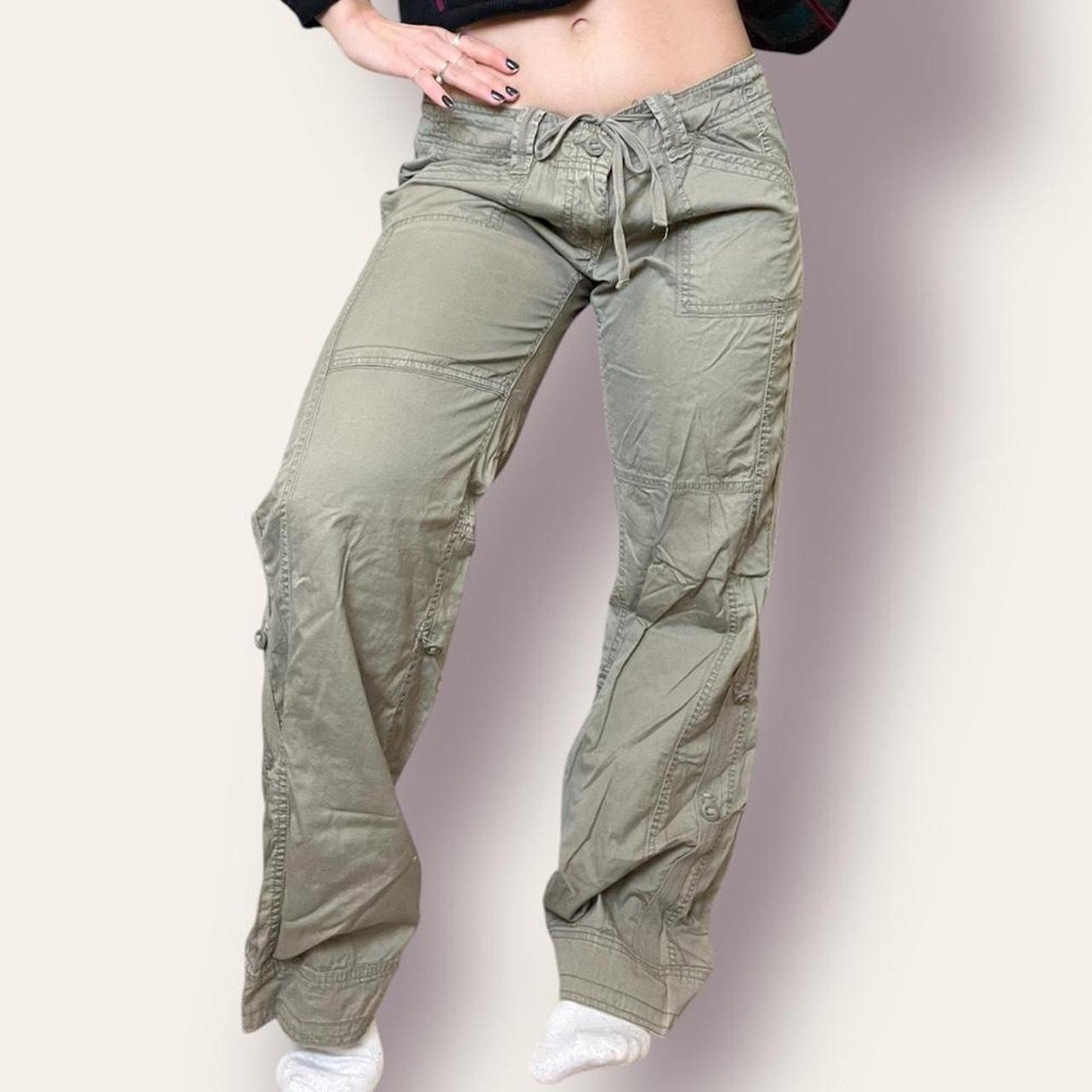 ✭ knahki/ brown/ green cargo pants. Baggy fit with low rise drawstring waist. Side buttons to shorten length.