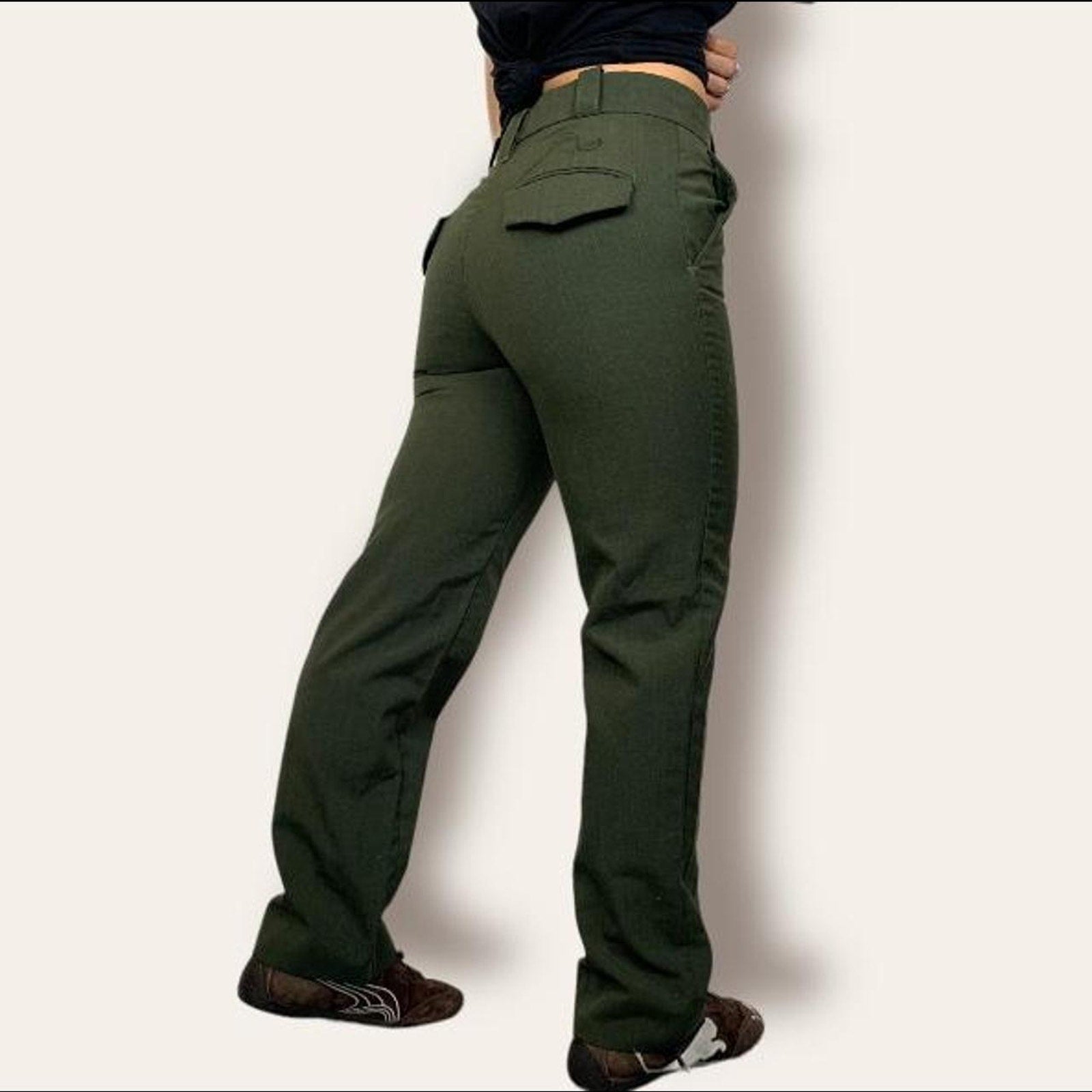 ♡ Dark green trousers. Straight leg fit with high waist and flap back pockets. Part wool material