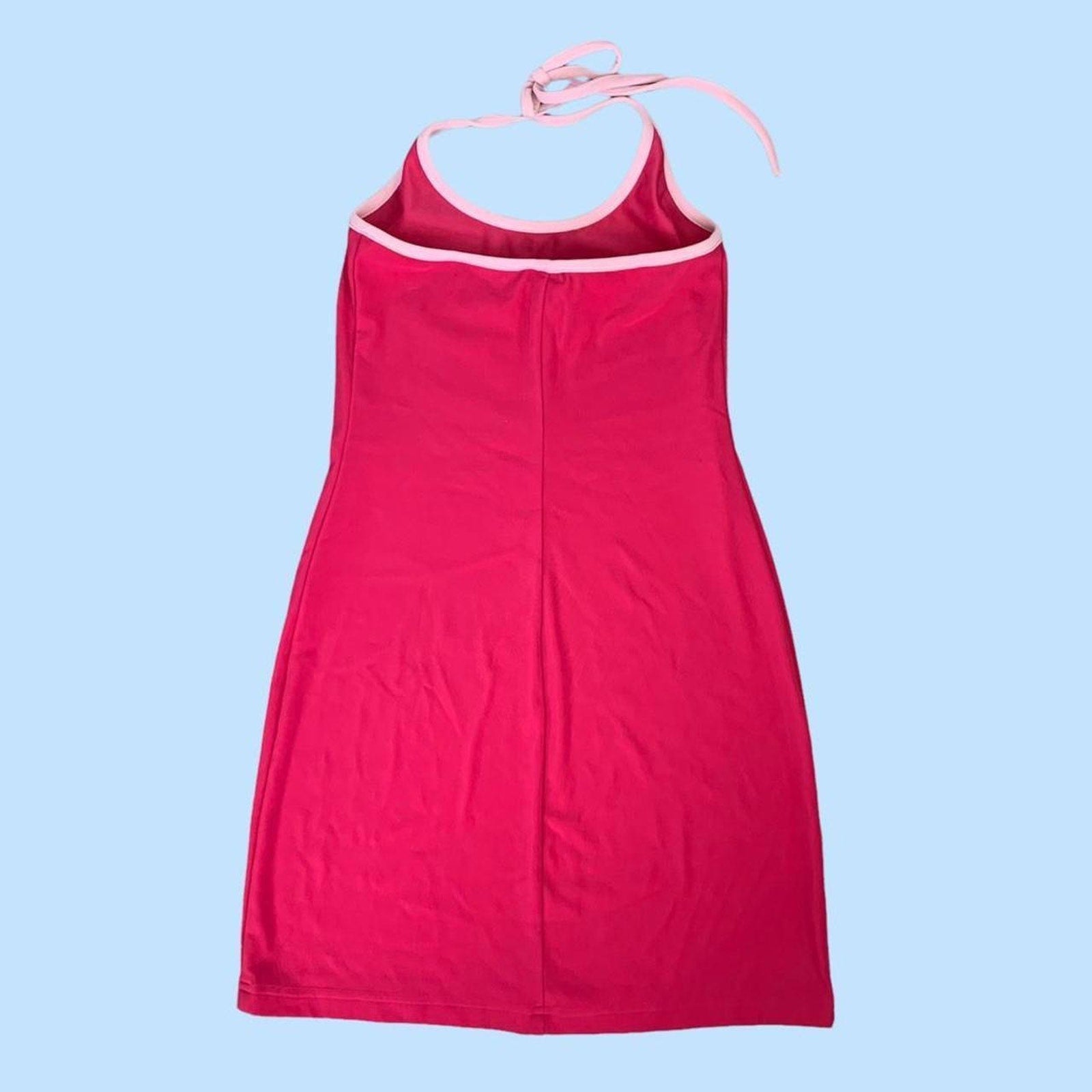 ā Bright pink body on mini dress with tie halter neck. Stretchy material.