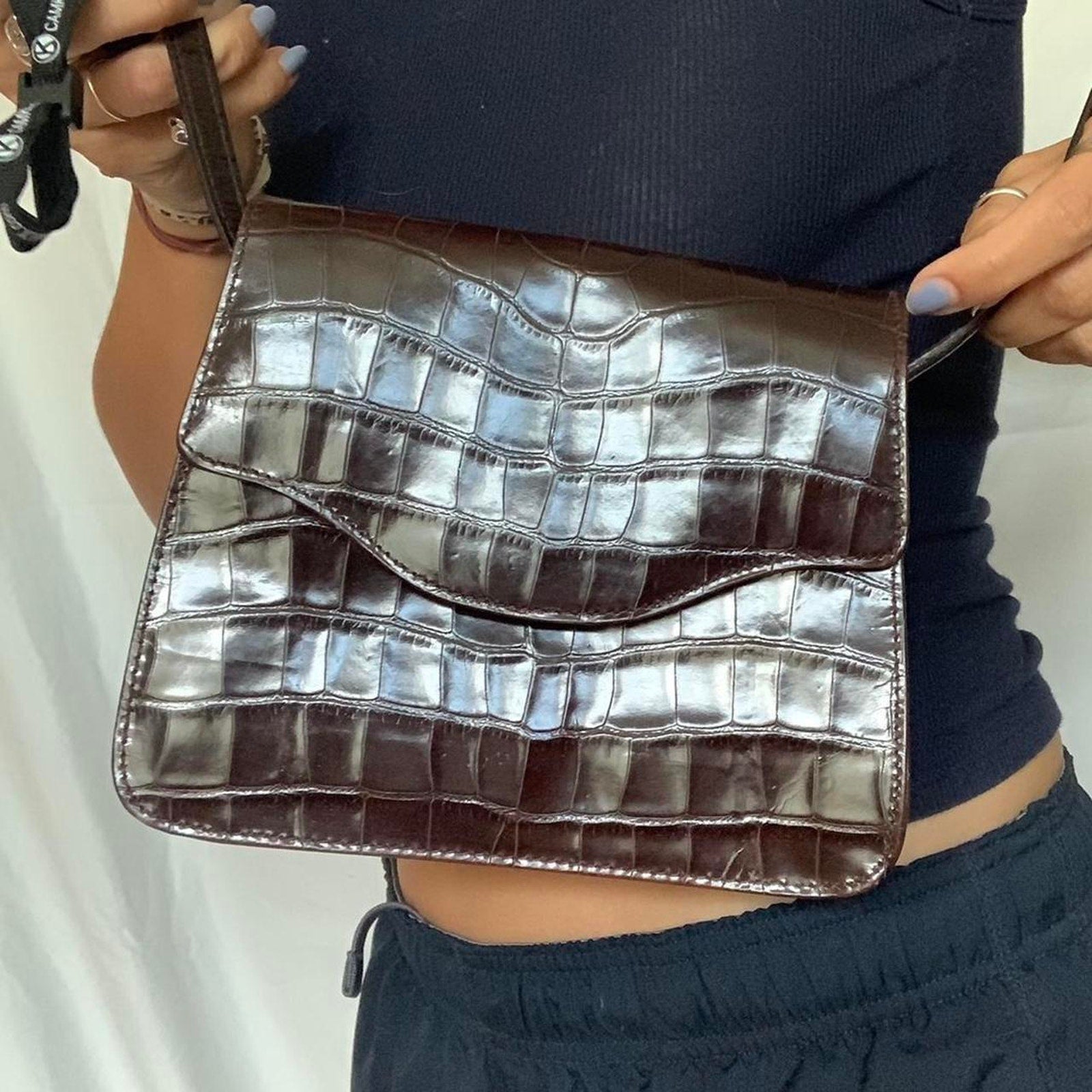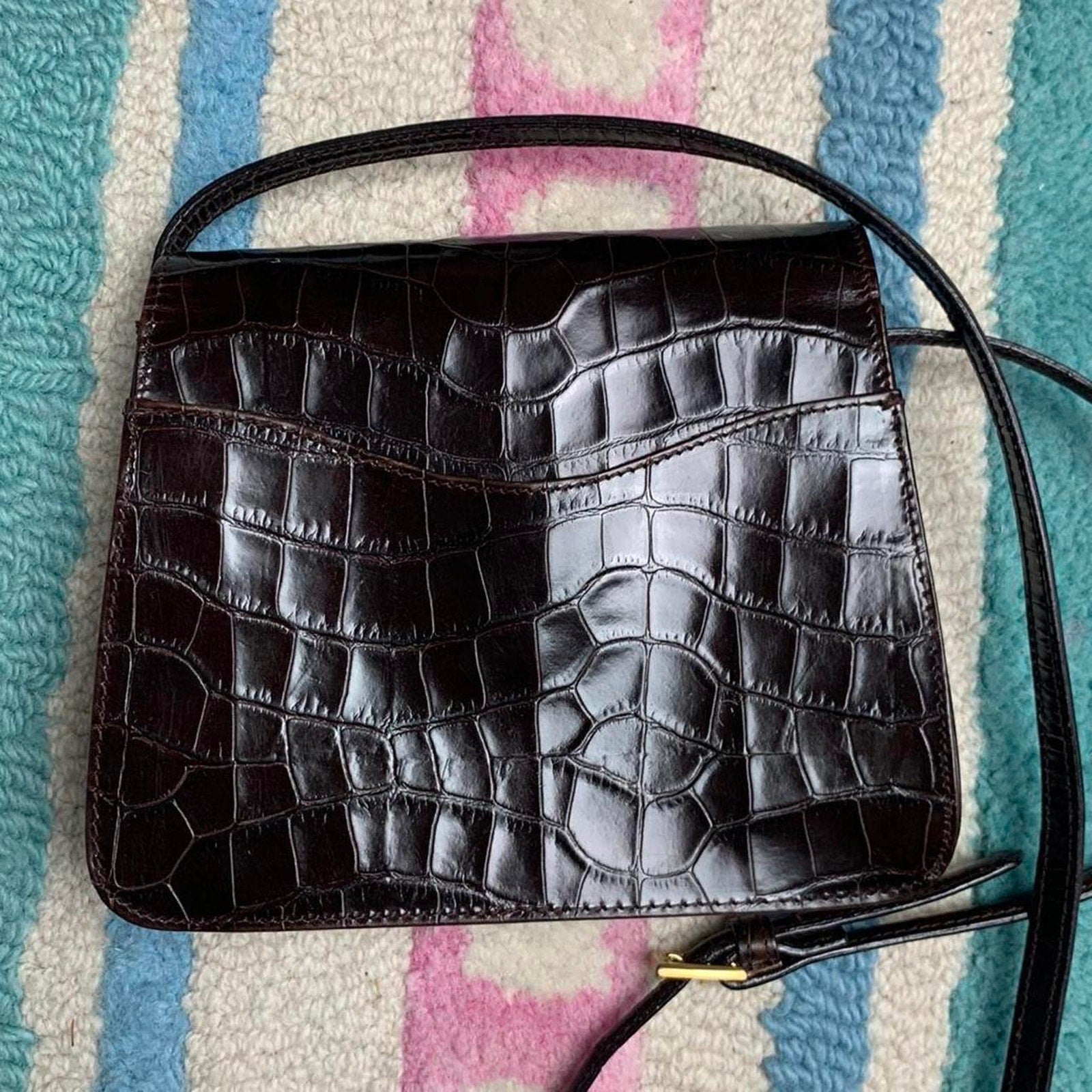 ♡ brown faux leather animal print crossbody bag. Shiny material, magnet closure and adjustable straps.