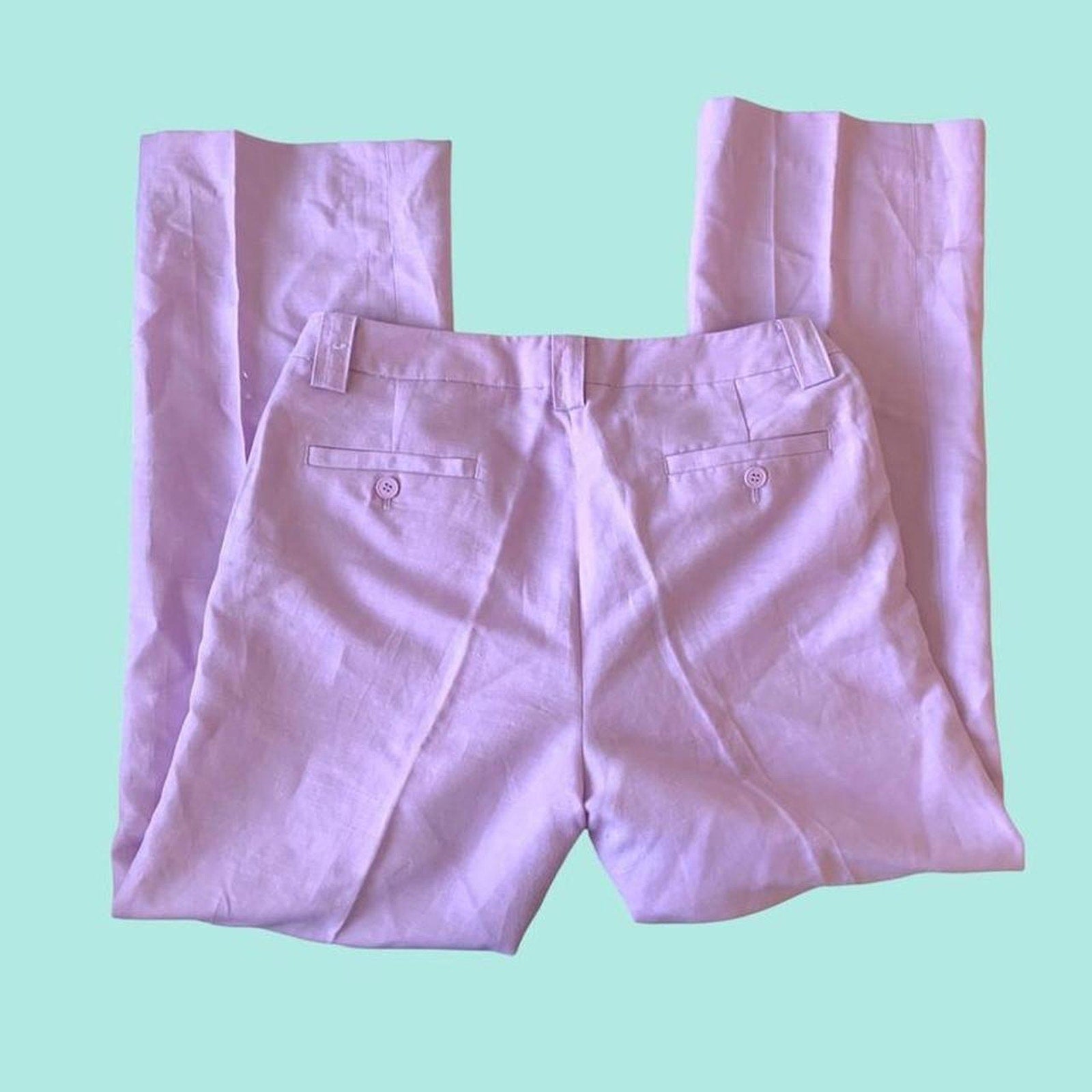 ♡ lilac trousers with linen blend material. Mid to low rise with flare leg .