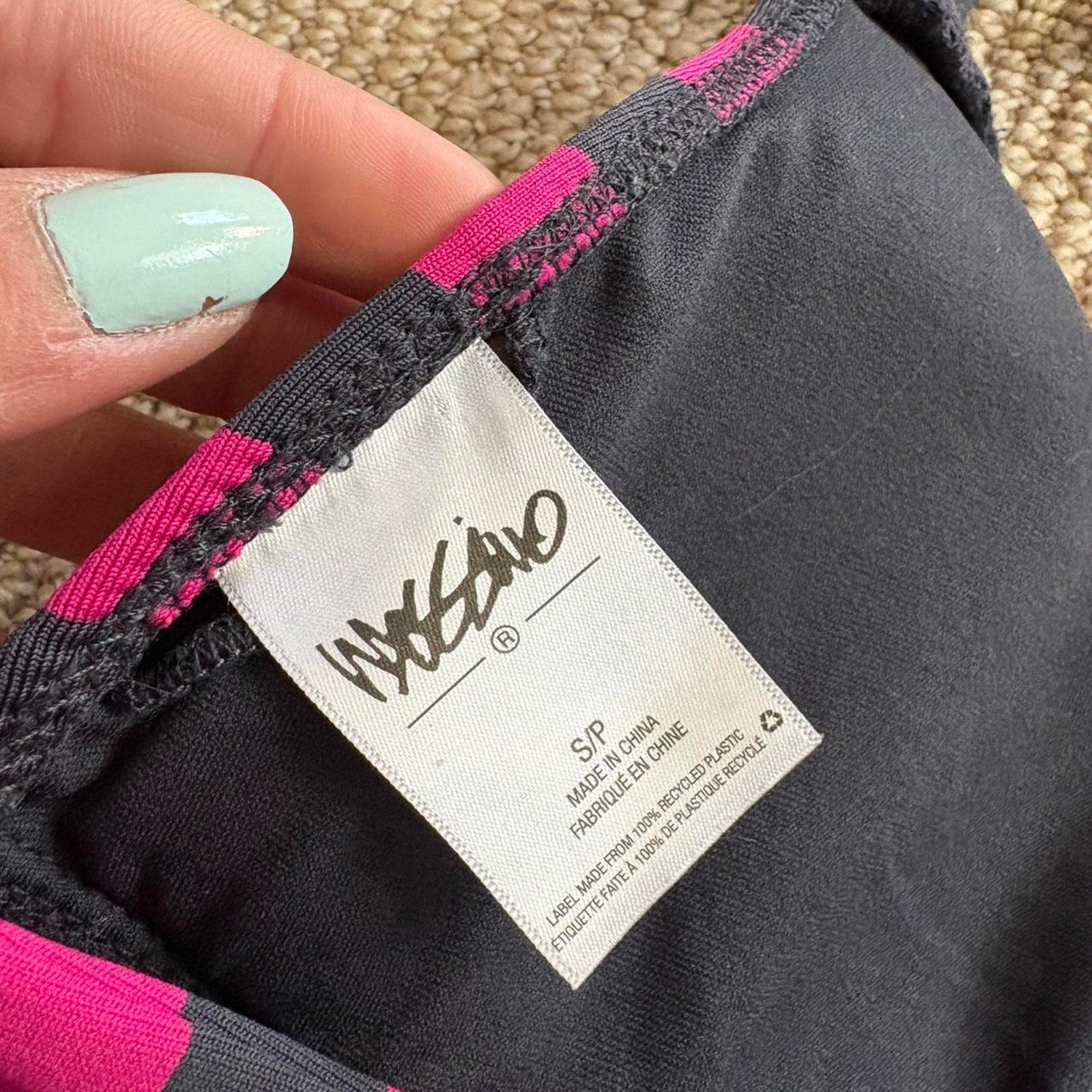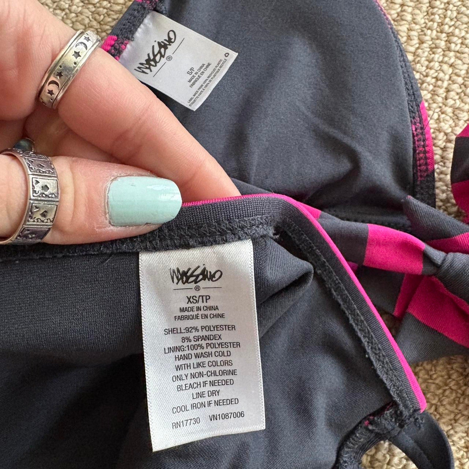 ✭ grey and pink bikini. Halter neck top and strappy bottoms.