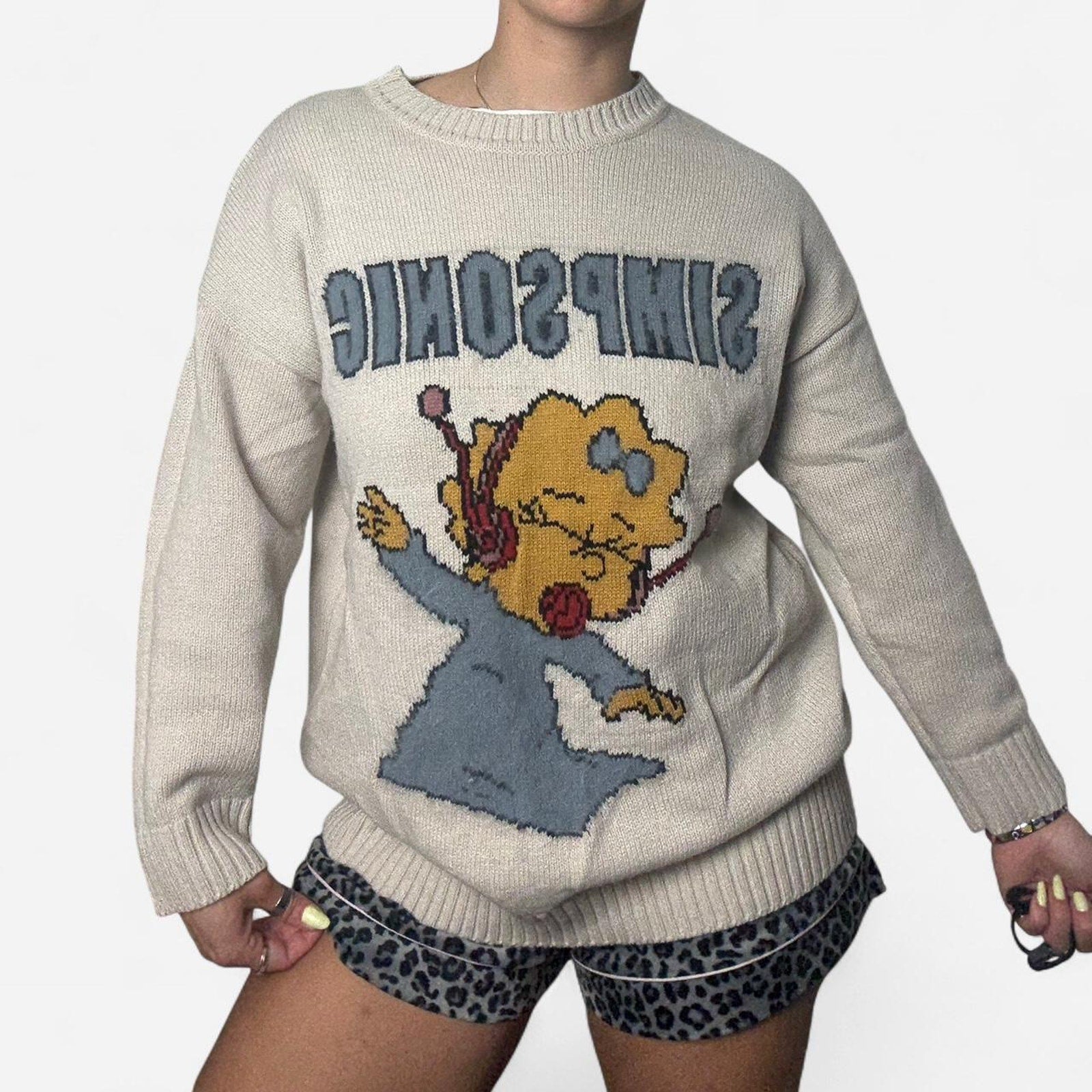 ā beige Simpsons sweater.