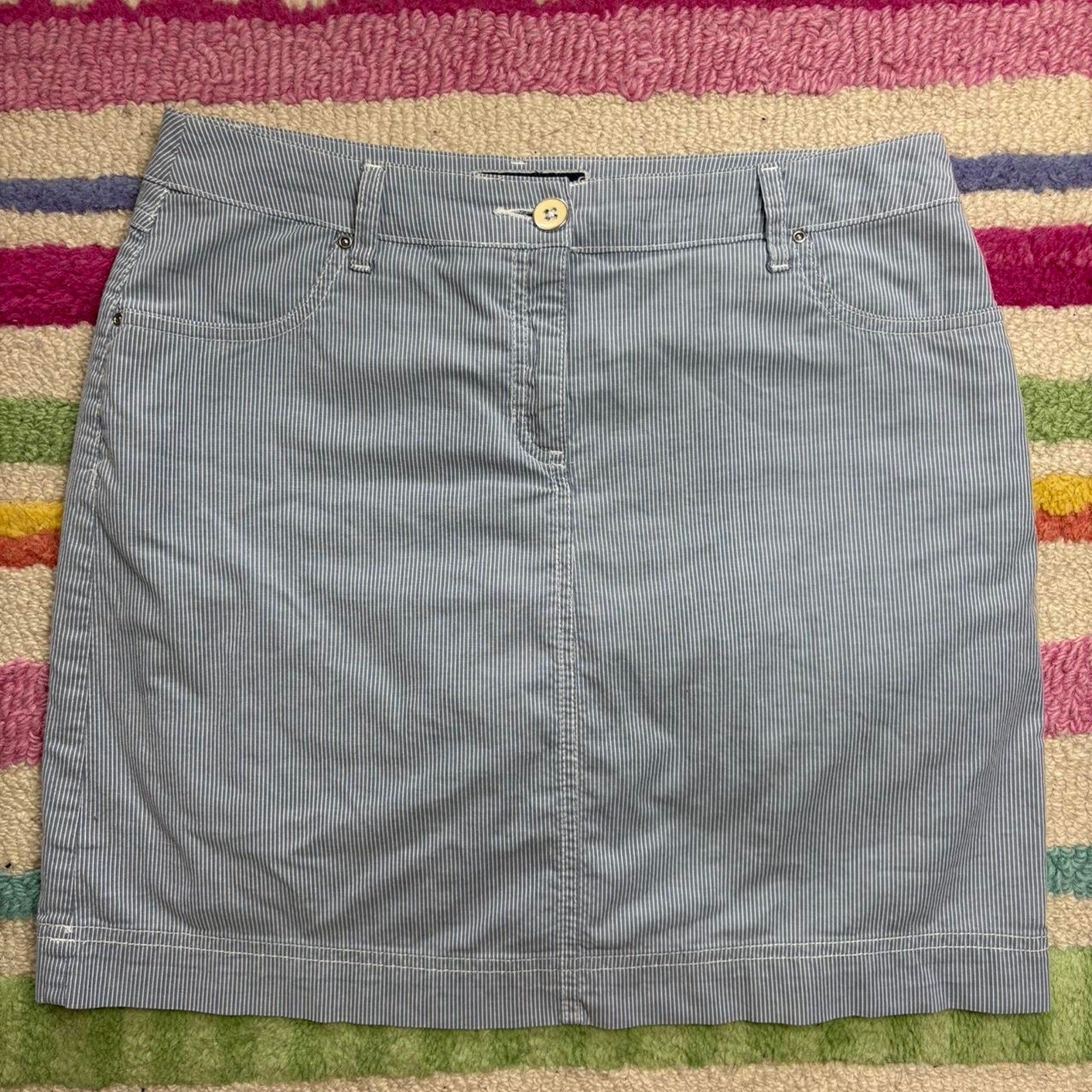 ā white and blue mini skirt with shorts underneath (skirt). Stretchy material.